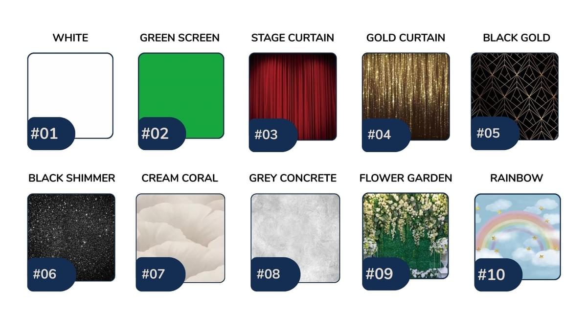 Choose between our 10 backdrop options